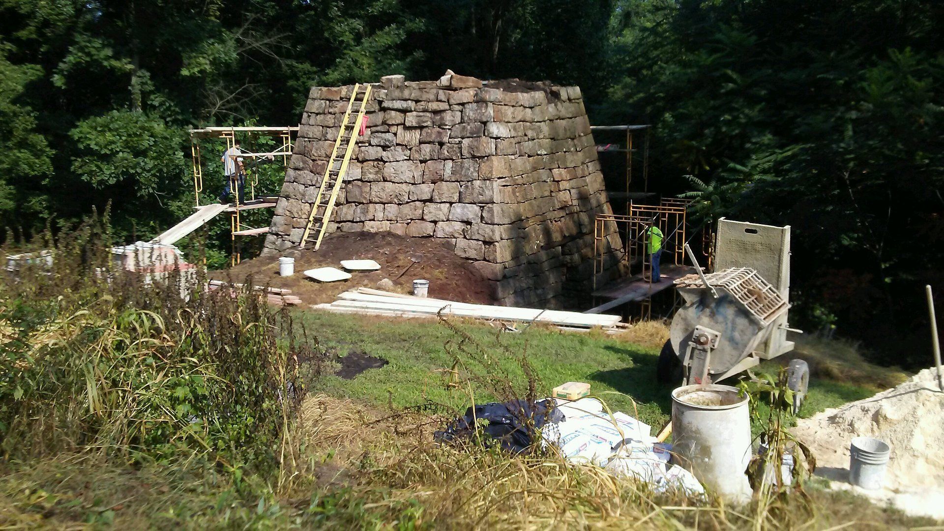 Almost seven years to the day of purchase, restoration work was began. Phase one included the cleaning of plant life and debris from the gaps in the stones and filling with mortar
